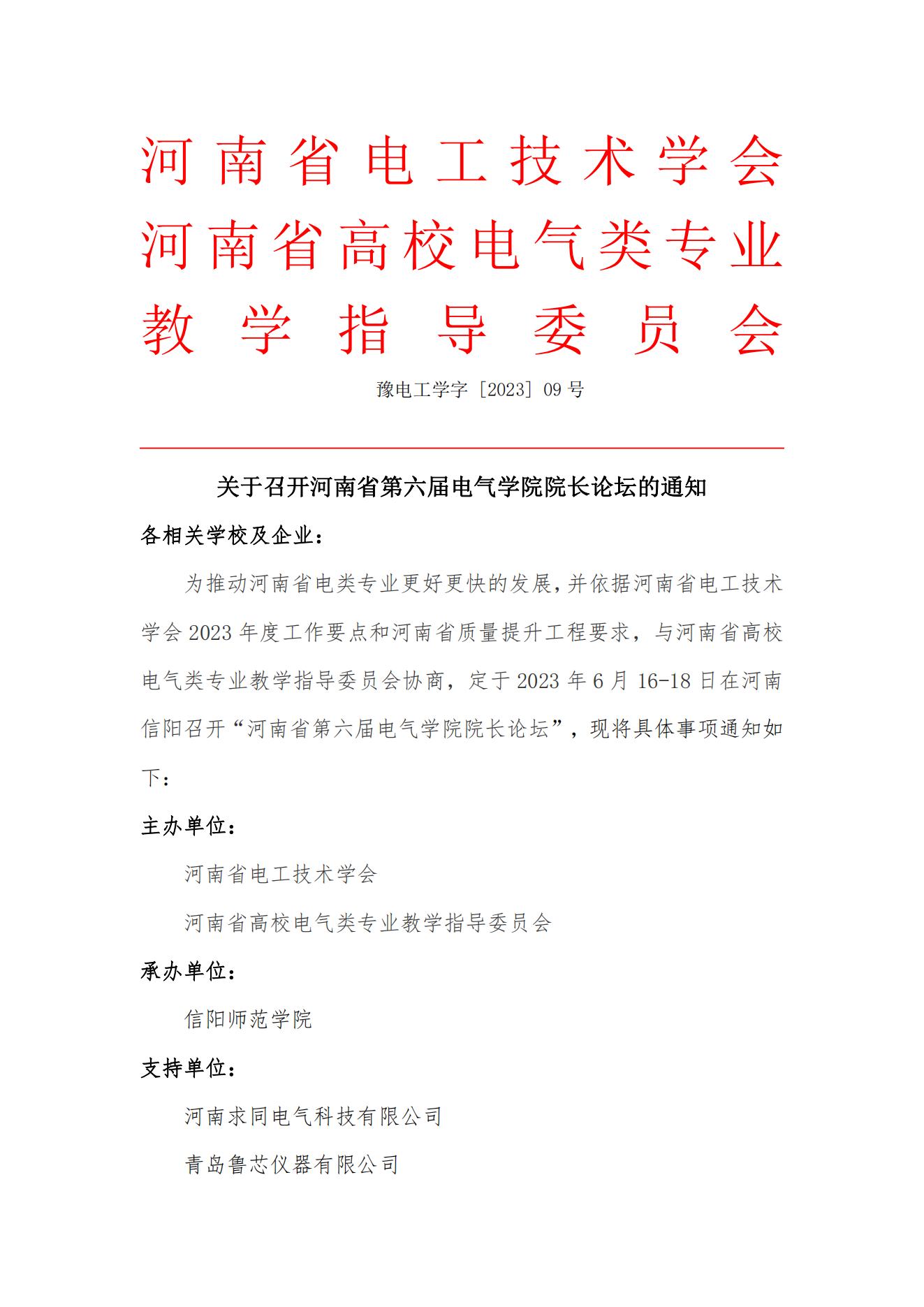 关于召开河南省第六届电气学院院长论坛通知